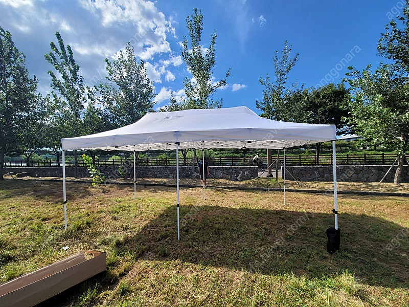 3x6m 캐노피를 도매로 구입했는데, 소매가는 30만 원 이상이라 너무 비싸서 캠핑장 설치 후 남은 제품을 판매합니다. 프레임은 32mm 두꺼운 스틸로 되어 있고, 지붕은 600D 원단으로 방수 성능이 탁월한 프리미엄 제품입니다. 소매가를 확인해 보시면 최소 30만 원 이상이라는 걸 아실 수 있을 거예요. 지붕 색상은 화이트, 블루입니다. 32mm 프레임 + 600D 방수 지붕 => 17만 원에 판매합니다. (3면 벽 추가 시 2만원 추가됩니다.) 국내 판매가 개당 9000~10000원 하는 프리미엄 모래주머니 개당 5000원 판매합니다. 직거래, 네이버 안전페이, 계좌 송금 모두 가능하며 택배 거래도 가능합니다. 빠른 소진이 예상되니, 필요하신 분은 서둘러 연락 주세요. 채팅, 전화 모두 가능합니다. 2세트 이상 구입 시 서울, 경기, 인천 당일 배달 가능합니다. ※ 카페 상품 게시글은 자동으로 중고나라 앱/사이트에 노출합니다. 노출을 원하지 않으실 경우 고객센터로 문의 바랍니다. ※ 등록한 게시글이 회원의 신고를 받거나 이상거래로 모니터링 될 경우 중고나라 사기통합조회 DB로 수집/활용될 수 있습니다. ─────────────────── 📢 제목에 "제조사/ 브랜드 명"과 "상품명(ex. 여성용 드라이브)”을 넣어 작성하면, 보다 빠른 판매가 가능합니다! 📢 게시글 작성 시 배송 방법에 “직거래”와 “내 위치” 설정할 경우, 보다 빠른 판매가 가능합니다!