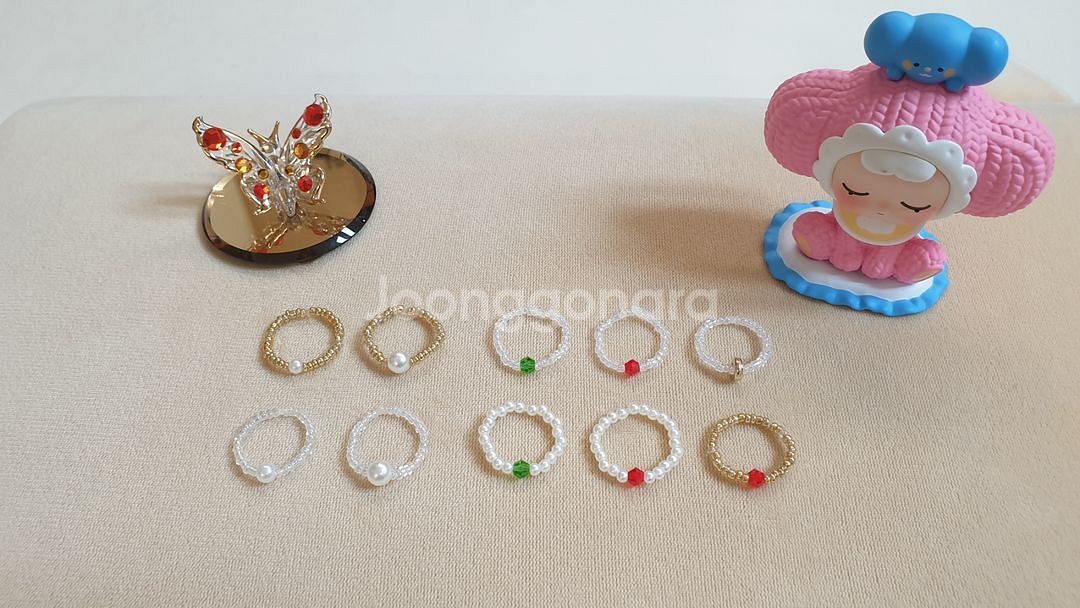 예쁜 진주 & 보석 비즈반지 판매합니다 ! 색감 디자인 넘 예쁘고 탄력있는 소재라 편하게 착용할수있어요 데일리로 포인트로 넘넘 예뿐 핫템 ♡ 실물이 더 예쁘고 착용하면 더더더 예뻐요 ^^ 개당가격이고 2개시 5000원에드립니다 반택 +2500 일택 +3500