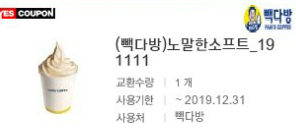 ▶ 사용기간 : ~2019/12/31 ★상품 교환방법 -전국 빽다방에서 유효기간 이내에 본 쿠폰을 제시하시면 실물상품과 교환 가능합니다. ★유의사항 -단 원하시는 경우, 추가금액 결제 후 사용가 이상의 타 음료로 교환 가능합니다.