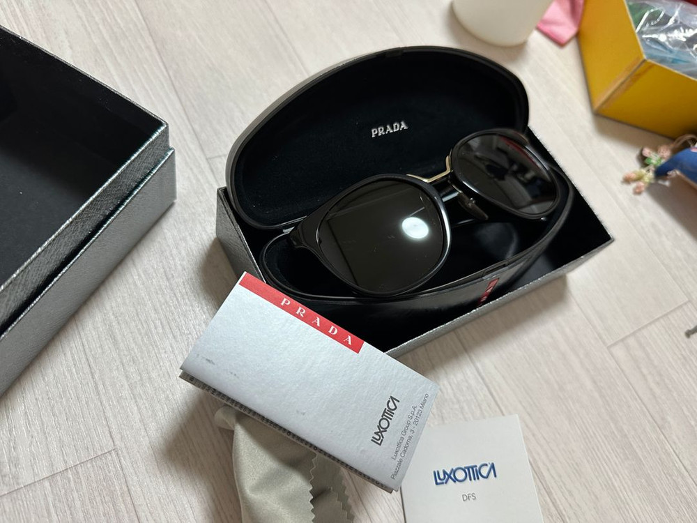 여행가면서 사서 한 번 사용하고 넣어둔 선글라스입니다. 케이스에 지문만 묻었고 선글라스는 기스도 없고 거의 새거입니다. 모델명 SPR17T 컬러 1AB-5S0 안구 사이즈 53mm 브릿지 사이즈 20mm