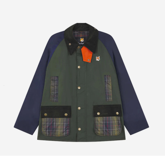바버 x 메종 키츠네 뷰포트 패치워크 왁스 자켓 아이리시 그린