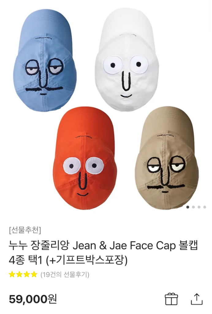 개인정보(거래정보)를 주고받는 행위는 사기에 노출될 수 있으므로 즉시 중고나라로 신고해 주세요누누 장줄리앙 모자 색 선택 가능 카카오 선물 (배송지 입력) 50000 (원가 59000)
