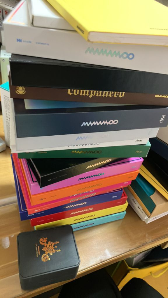 히히하헤호 앨범이랑 데칼코마니 제외 헬로부터 트래블 앨범까지 있음(일본앨범,ost앨범 제외) 휘인 soar 앨범 문별 달이 태양을 가릴때 앨범 솔라감성 앨범 포스터 12장(트래블포스터(2장) 빼고 구겨짐 및 자잘한 흠 있음) 포카바인더, 비공굿 포카 포함 44장 무봉, 미니무봉 회중시계 콘서트 굿즈(일기, cd 등) 족자봉 2019년 시즌그리팅(돈돈이) 휘인비공굿(포토북 및 슬로건)등 다른 비공굿 포스터랑 문별앨범 제외하고는 상태 괜찮습니다. 무봉박스는 찌그러진 부분 있는데 무봉은 괜찮아요. 택배비 제외 십만원입니다. 처분하는거라 일괄로만 팝니다.