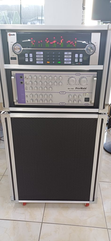 노래방이동식세트 반주기.리모컨.앰프 중고이며 그외 이동식케이스 새것 제품입니다 태진반주기 볼륨기능(마이크.에코.음악) 리모컨 조절기능. 반주기 전면 음악,마이크 조절가능 악보기능 신곡19년도12월신곡 수록 반주기.리모컨(가수.제목별검색기능) 노래방 고출력 앰프600와트 이동식 하단 스피커 700와트 상단.하단 분리 새것 신품 국산 고급형 유선마이크2개 업소용 이동식 시스템입니다 노래소리 충분한 사운드 입니다 노래방 영상은 집에 사용하시던 티비에 연결가능합니다 모니터 없는 상품입니다 금액 50만원 문의 010.5773.7469