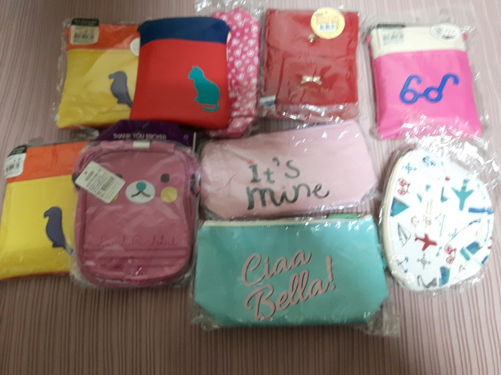미사용 끈가방들과 파우치등 총 10가지에요 비닐포장은 보관상 깨끗하지 못하겠지만 속은 멀쩡해요 설날 예쁜 공주님들 세뱃돈 넣어서 하나씩 나눠주심 좋을듯요^^ 반품 교환 환불 사양하오니 신중히 구매해주시기바랍니다 제가 직접 잰 사이즈라 오차가 있을수있습니다