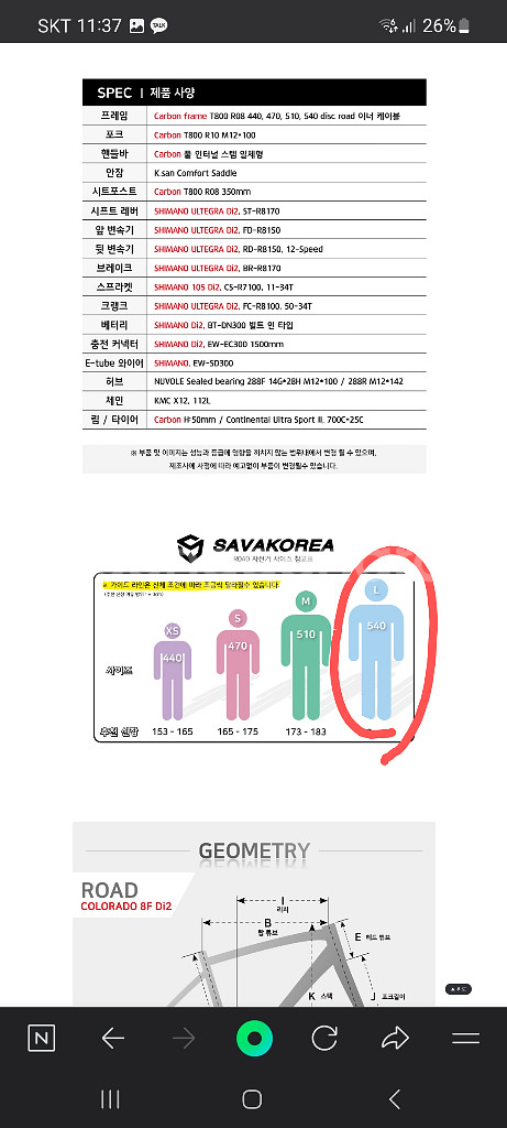 사바 콜로라도 F8 di2 팝니다 사이즈 L (180-190) *사이즈는 참고하세요 제가 179인데 동일모델 m사이즈 작아서 L사이즈로 교체 하고 현재 딱좋습니다 24년 구매 (프레임 10년보증 uci인증) 풀인터널 방식 + 유압식 디스크 + 풀울테셋 di2 사진보다시피 깨끗합니다 하자라면 크랭크에 기스 있어 붓으로 리터치 했어요 (마지막 사진 참고) 휴대폰 거치대 + 가민 거치대 + gps속도계 + 헤드라이트 + 후미등 설치한것 모두 드립니다 지역 : 수원, 평택, 천안