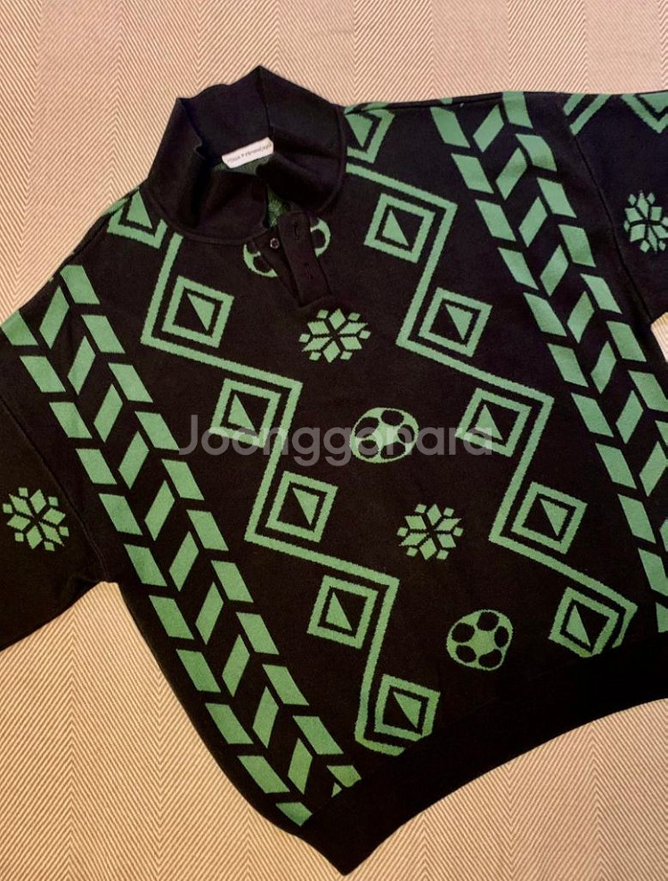 뉴욕에서 구매한 고샤루브친스키x오프닝세레모니 스웨터 판매합니다. 사용감 거의 없고 컬러감 선명합니다. 오버핏으로 95부터 105까지 모두 편하게 착용 가능해요. 여성분도 오버하게 연출 가능합니다. 블랙 바탕에 그린 컬러 프린팅이 선명하게 들어가 있어 꾸안꾸 코디로 적격입니다. 편하게 문의주세요!