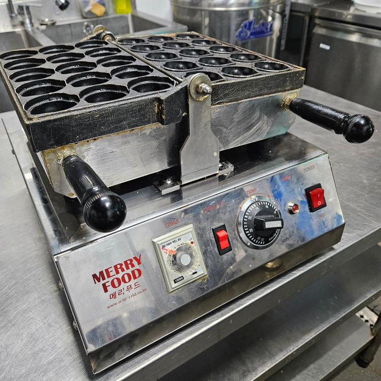 2023년 10월 신제품으로 메리푸드에서 구입했어요. 15구 호두과자기계 구입가 495,000원 판매가 250,000원 거래장소 : 산본중심상가