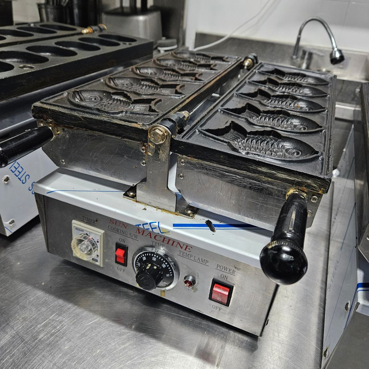 2023년 10월 신제품으로 태양산업에서 구입했어요. 큰붕어빵 5마리 제조용 기계 구입가 520,000원 대당 판매가 250,000원 대당 거래장소 : 산본중심상가 2대 같이구입 가능해요. 또한 호두과자,계란빵 기계와도 같이 구입가능해요.