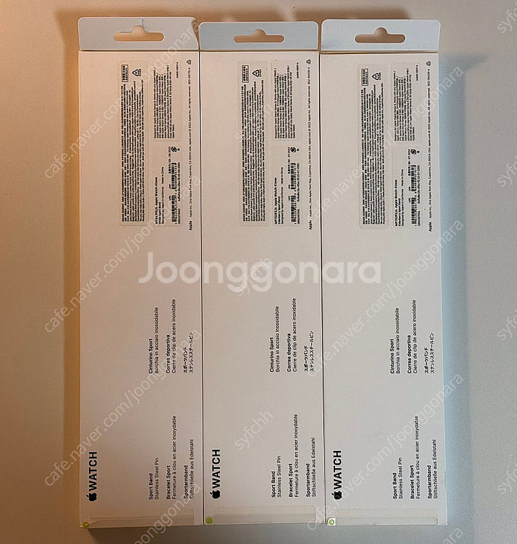 ※ 카페 상품 게시글은 자동으로 중고나라 앱/사이트에 노출합니다. 노출을 원하지 않으실 경우 고객센터로 문의 바랍니다. ※ 등록한 게시글이 회원의 신고를 받거나 이상거래로 모니터링 될 경우 중고나라 사기통합조회 DB로 수집/활용될 수 있습니다. ─────────────────── 📢 제목에 "제조사/ 브랜드 명"과 "상품명(ex. 맥북 에어 13)”를 넣어 작성하면, 보다 빠른 판매가 가능합니다! 📢 게시글 작성 시 배송 방법에 “직거래”와 “내 위치” 설정할 경우, 보다 빠른 판매가 가능합니다! Apple 미개봉 정품 애플워치 스트랩 판매합니다 3개 일괄로 판매합니다