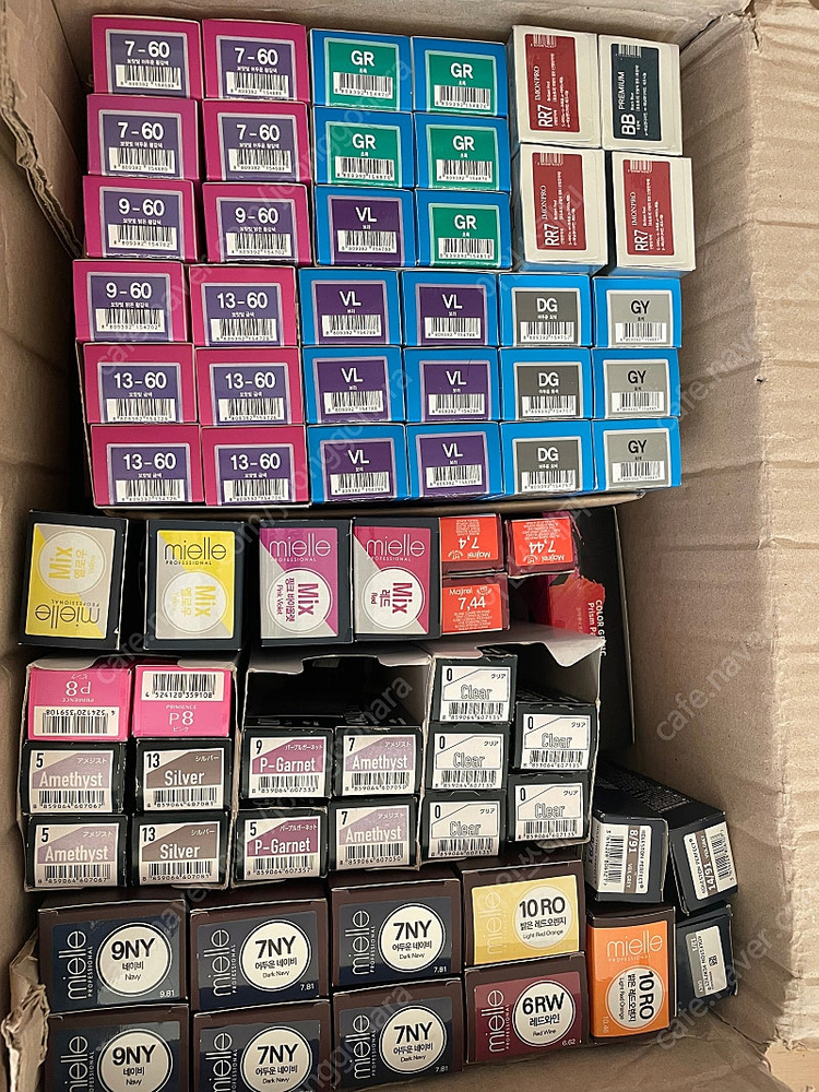 ※ 카페 상품 게시글은 자동으로 중고나라 앱/사이트에 노출합니다. 노출을 원하지 않으실 경우 고객센터로 문의 바랍니다. ※ 등록한 게시글이 회원의 신고를 받거나 이상거래로 모니터링 될 경우 중고나라 사기통합조회 DB로 수집/활용될 수 있습니다. ─────────────────── 📢 제목에 "제조사/ 브랜드 명"과 “상품명(ex. 18k 귀걸이)”을 넣어 작성하면, 보다 빠른 판매가 가능합니다! 📢 게시글 작성 시 배송 방법에 “직거래”와 “내 위치” 설정할 경우, 보다 빠른 판매가 가능합니다! 염색약 (약75개정도) -밀본, 시세이도, 웰라, 미엘, 레삐, 아이몬 염색약은 미개봉 새상품이지만 대체적으로 소비기한 지난것이 많아 연습용으로 쓰시면 좋을거같습니다. 택배비 포함11만원 안심번호로 연락주세요~