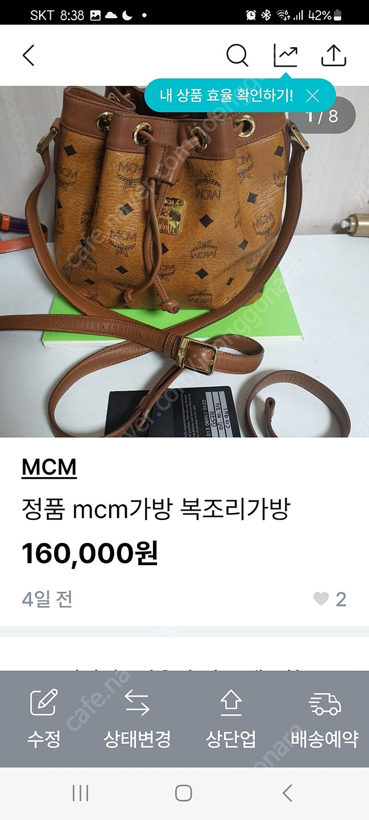 ※ 카페 상품 게시글은 자동으로 중고나라 앱/사이트에 노출합니다. 노출을 원하지 않으실 경우 고객센터로 문의 바랍니다. ※ 등록한 게시글이 회원의 신고를 받거나 이상거래로 모니터링 될 경우 중고나라 사기통합조회 DB로 수집/활용될 수 있습니다. ─────────────────── 📢 제목에 "제조사/ 브랜드 명"과 "상품명”를 넣어 작성하면, 보다 빠른 판매가 가능합니다! 📢 게시글 작성 시 배송 방법에 “직거래”와 “내 위치” 설정할 경우, 보다 빠른 판매가 가능합니다! ※ 카페 상품 게시글은 자동으로 중고나라 앱/사이트에 노출합니다. 노출을 원하지 않으실 경우 고객센터로 문의 바랍니다. ※ 등록한 게시글이 회원의 신고를 받거나 이상거래로 모니터링 될 경우 중고나라 사기통합조회 DB로 수집/활용될 수 있습니다. ─────────────────── 📢 제목에 "제조사/ 브랜드 명"과 “상품명(ex. 숄더 핸드백)”을 넣어 작성하면, 보다 빠른 판매가 가능합니다! 📢 게시글 작성 시 배송 방법에 “직거래”와 “내 위치” 설정할 경우, 보다 빠른 판매가 가능합니다! 정품 mcm 미니 복조리백 입니다. 가방 단품입니다