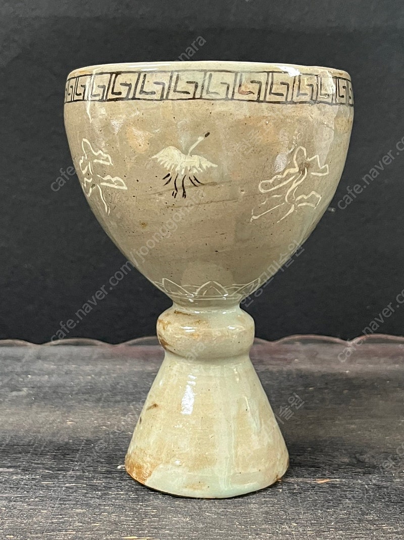 ※ 카페 상품 게시글은 자동으로 중고나라 앱/사이트에 노출합니다. 노출을 원하지 않으실 경우 고객센터로 문의 바랍니다. ※ 등록한 게시글이 회원의 신고를 받거나 이상거래로 모니터링 될 경우 중고나라 사기통합조회 DB로 수집/활용될 수 있습니다. ─────────────────── 📢 제목에 "제조사/ 브랜드 명"과 "상품명”를 넣어 작성하면, 보다 빠른 판매가 가능합니다! 📢 게시글 작성 시 배송 방법에 “직거래”와 “내 위치” 설정할 경우, 보다 빠른 판매가 가능합니다! 👆 오늘 작성가능한 게시글 수가 부족하다면, 상단에 "중고나라 앱 다운받기"를 통해서 앱에서 작성해 주세요! 작품규격 : 높이16 구경11.3 저경7(cm) 고려청자 상감 운학문 고족배입니다. 고족배란 팔자로 뻗은 높은 다리 위에 완 모양 배신이 붙은 잔을 말합니다. 외형적인 특징 때문에 고각배(높은 다리가 붙은잔), 파배(손잡이가 붙은잔), 마배(말위에서 사용하는 잔)등으로 불립니다. 작품 상부의 잔에는 흑백 상감으로 운학문이 시문되어 있습니다. 구연부의 거치문 학의 부리와 꼬리깃, 다리는 흑백상감으로,구름과 학의 몸, 저부의 연판문은 백색상감으로 나타나져 있습니다. 바닥의 접지면은 유약을 닦아내었고 잔의 안쪽에 내화토를 받쳐 구운 흔적이 있습니다. 비색이 살아있으며 투명유를 발라 상감의 문양이 더욱 깨끗해 보입니다. 고려청자의 우수함과 창의력이 돋보이는 걸작입니다.