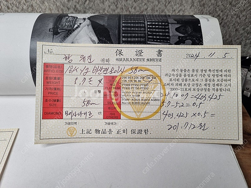 ※ 카페 상품 게시글은 자동으로 중고나라 앱/사이트에 노출합니다. 노출을 원하지 않으실 경우 고객센터로 문의 바랍니다. ※ 등록한 게시글이 회원의 신고를 받거나 이상거래로 모니터링 될 경우 중고나라 사기통합조회 DB로 수집/활용될 수 있습니다. ─────────────────── 📢 제목에 "제조사/ 브랜드 명"과 "상품명”를 넣어 작성하면, 보다 빠른 판매가 가능합니다! 📢 게시글 작성 시 배송 방법에 “직거래”와 “내 위치” 설정할 경우, 보다 빠른 판매가 가능합니다! 👆 오늘 작성가능한 게시글 수가 부족하다면, 상단에 "중고나라 앱 다운받기"를 통해서 앱에서 작성해 주세요! 18k 5.7돈 입니다 편하게 연락 주세요 유명한곳에서 제작 했습니다