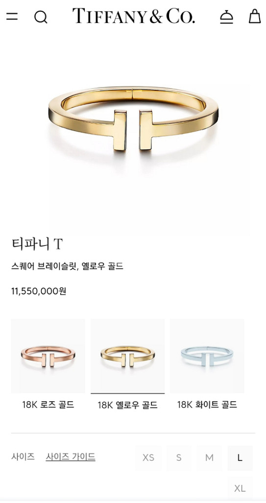 티파니 엔코 T스퀘에 브레이슬릿 18호 남녀공용 재질:18k . 공홈가 1,150만원 =>판매가 590만원 대전 티파니 매장에서 11월 9일 폴리싱 수령받았습니다. 기스 하나없이 새거네요. 박스.더스트도 새거입니다. 선물용으로 좋습니다. 편하게 문의주세요