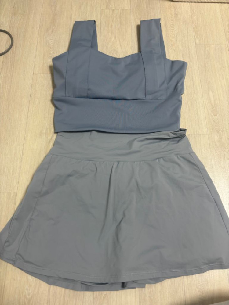 세트로 만원이요~ 상의 L 이고 하의 m 이요 55사이즈 인데 가슴이 있는 편이라 L입었어요 편하게 입을 수 있어요 폴 처음 탈 때 입기 좋아요 Cu 반값택포 입미다!!