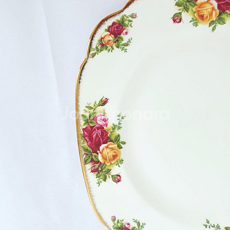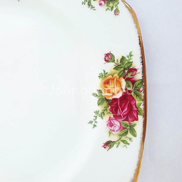 로얄알버트 올드컨트리로즈 황실장미 사각 샐러드 접시에요. 2003년 이후 아시아에서 제작되었으며 펄스트 퀄리티에요. 올드 컨드리 로즈는 세계에서 가장 인기있는 도자기 패턴으로 꼽히고 있어요. 전체적으로 우수한 상태에요. 크기 지름 24.5cm