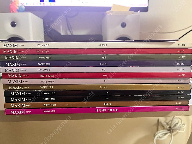 옛날 맥심 팝니다. 일괄로 판매하며 2022년도 달력같이 끼워드립니다. 정기구독으로 받아서 S표지이고 외관 내부 상태 모두 깨끗합니다. 일괄 8만원입니다.