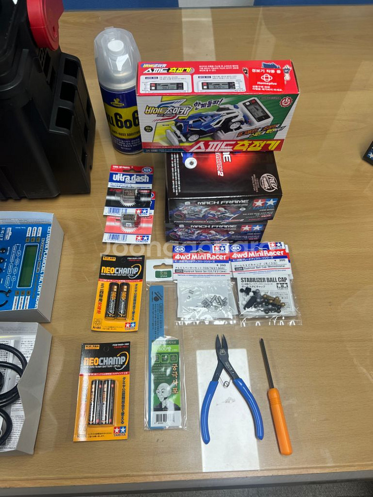 타미야 미니카 초심자 세트 판매합니다. 구성은 1. 타미야 b606 충전기(모터런) 2. 파코2 2대 3. 속도측정기 4. 울트라, 하이퍼 대시 모터 각 1개(총2개) 5. 기본 니퍼, 드라이버 각 1개 6. 드라이버세트 1세트 7. 네오챔프 충전지 2세트 8. 부품수납함 4개 9. 800방 스틱사포 10. 알루미늄 스페이서 2봉 11. 볼캡 2봉 12. all606 1통 13. 공구함 총 150,000(배송료 별도)원에 판매합니다. 기본적으로 미니카를 처음 시작하시는 분들이 사용하시기 좋은 아이템들입니다. 겹치는 아이템들이 있어 판매합니다. 구매를 원하시는 분은 쳇 주세요.