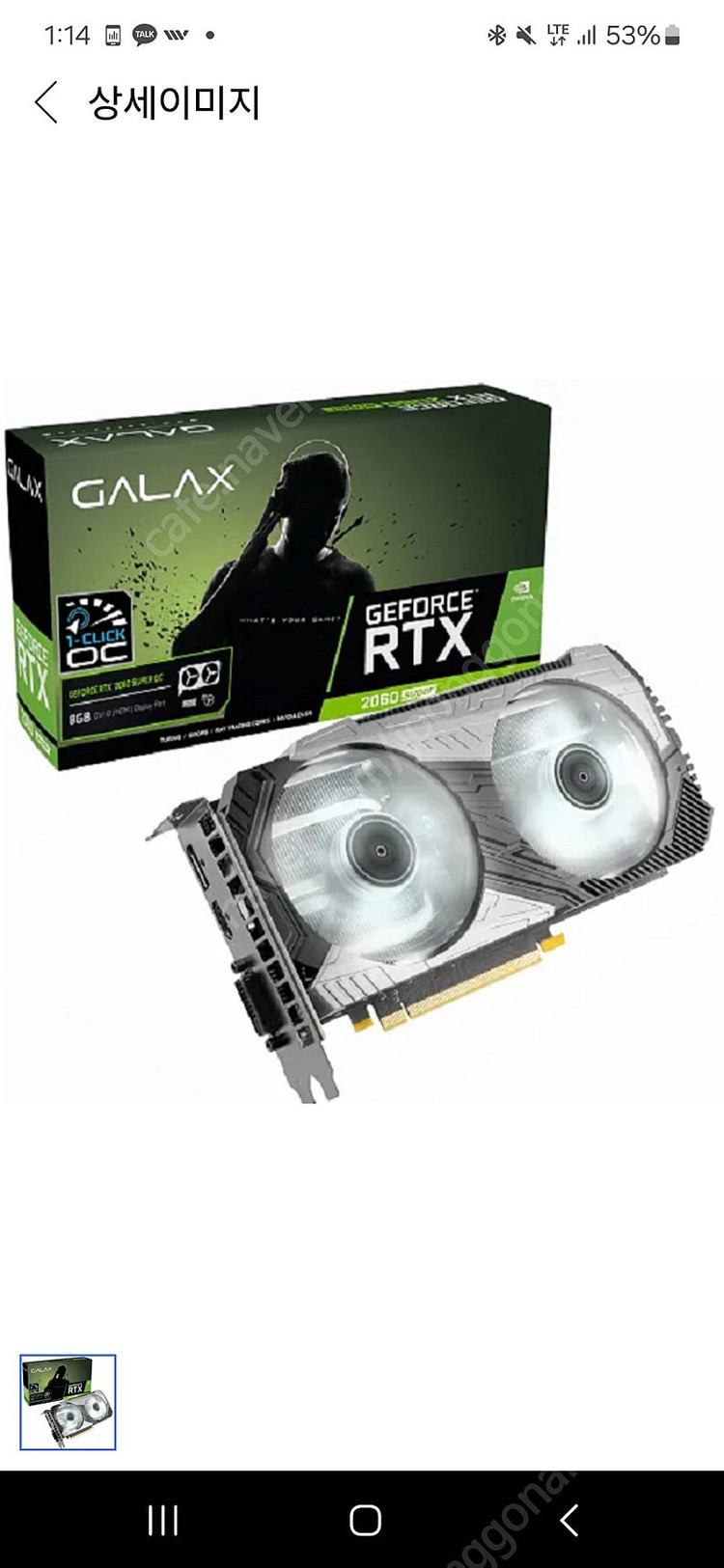 ※ 카페 상품 게시글은 자동으로 중고나라 앱/사이트에 노출합니다. 노출을 원하지 않으실 경우 고객센터로 문의 바랍니다. ※ 등록한 게시글이 회원의 신고를 받거나 이상거래로 모니터링 될 경우 중고나라 사기통합조회 DB로 수집/활용될 수 있습니다. ─────────────────── 📢 제목에 "제조사/ 브랜드 명"과 "상품명(ex. 맥북 에어 13)”를 넣어 작성하면, 보다 빠른 판매가 가능합니다! 📢 게시글 작성 시 배송 방법에 “직거래”와 “내 위치” 설정할 경우, 보다 빠른 판매가 가능합니다! 👆 오늘 작성가능한 게시글 수가 부족하다면, 상단에 "중고나라 앱 다운받기"를 통해서 앱에서 작성해 보세요! rtx 2060 슈퍼나 2070 사봐용!! 직거래는 김해,부산 가능 편하게 연락주세용!