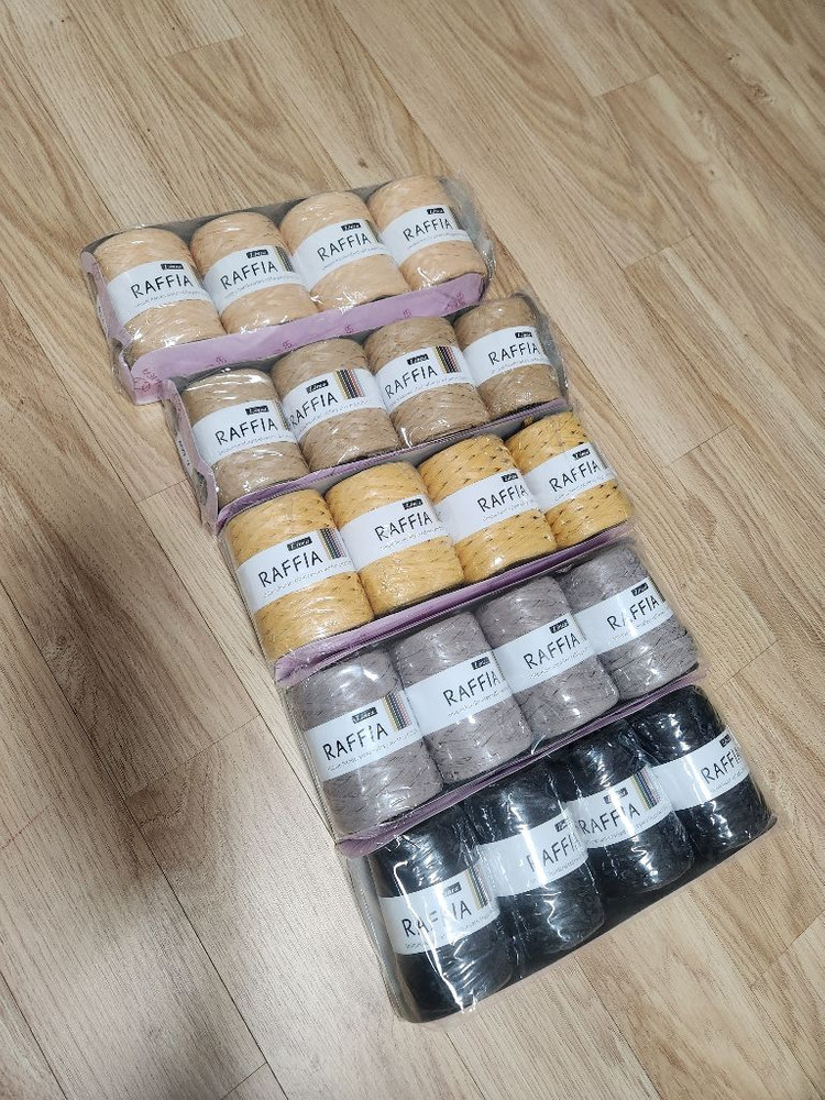 라피아실 판매해요 1팩( 4볼 ) 409번 ㅡ 진베이지 412번 ㅡ 진한살색 429번 ㅡ 허니 머스타드 447번 ㅡ 머드 420번 ㅡ 블랙 정가 28,000원 ==> 20,000원 네고는 사양해요 택배비 별도 3천원