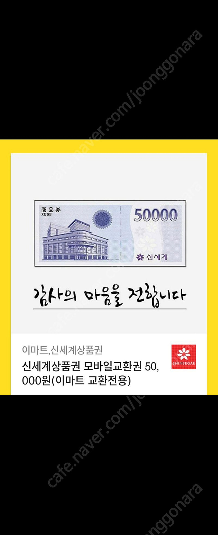 ※ 카페 상품 게시글은 자동으로 중고나라 앱/사이트에 노출합니다. 노출을 원하지 않으실 경우 고객센터로 문의 바랍니다. ※ 등록한 게시글이 회원의 신고를 받거나 이상거래로 모니터링 될 경우 중고나라 사기통합조회 DB로 수집/활용될 수 있습니다. ─────────────────── 📢 제목에 "제조사/ 브랜드 명"과 "티켓명(ex. 스타벅스 아메리카노 Tall) ”을 넣어 작성하면, 보다 빠른 판매가 가능합니다! 📢 게시글 작성 시 배송 방법에 “직거래”와 “내 위치” 설정할 경우, 보다 빠른 판매가 가능합니다! 👆 오늘 작성가능한 게시글 수가 부족하다면, 상단에 "중고나라 앱 다운받기"를 통해서 앱에서 작성해 보세요!