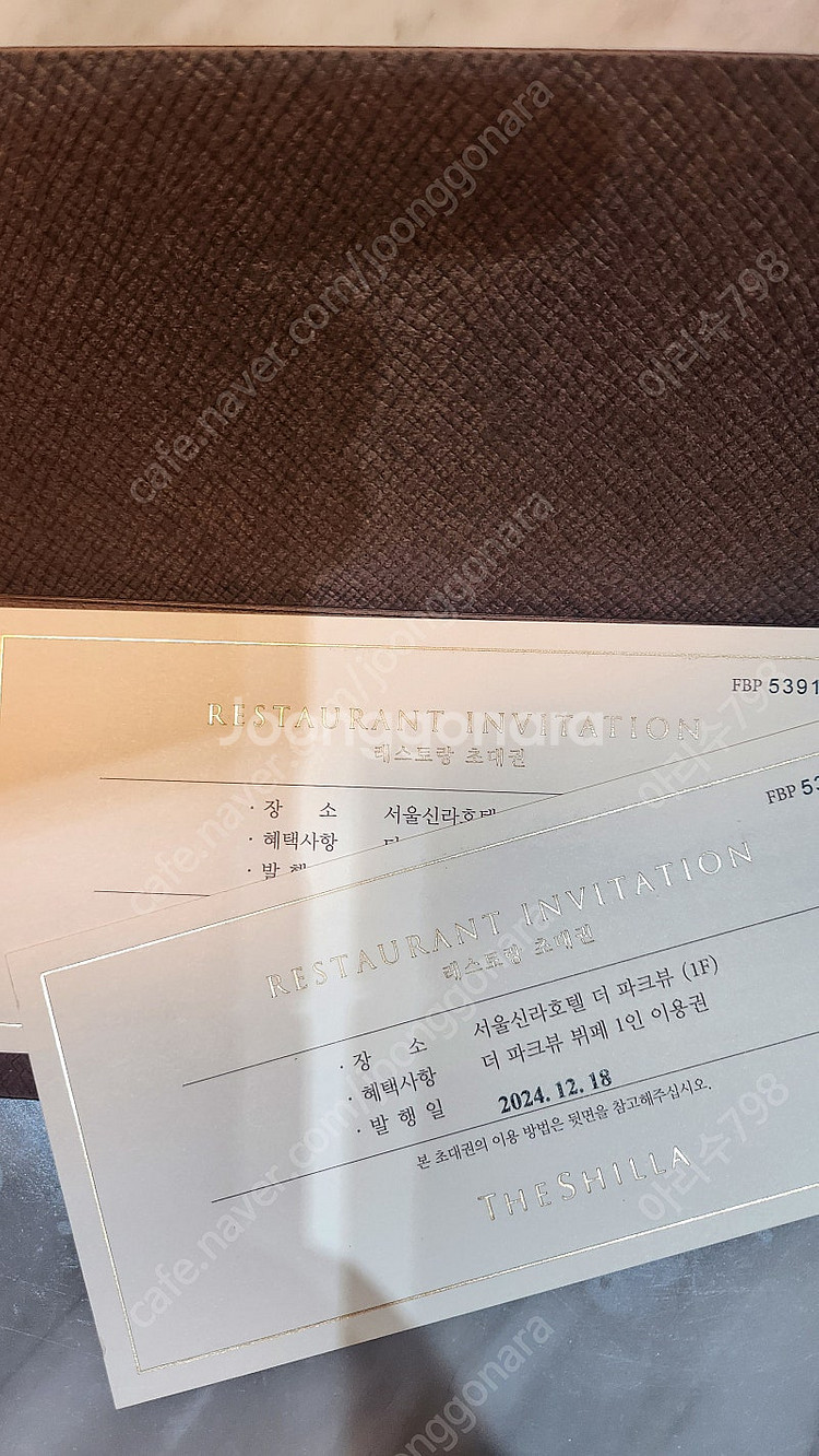 신라호텔 더 파크뷰 식사권 입니다. 발행금액은 192000원이고, 12월이용시는 추가금 내시면됩니다. 1장 18만원에 팝니다. 2장씩 36만원에 팝니다. 상품권 봉투에 2장씩 포장되어 있습니다. 총 8장 4세트 있습니다. 발행일: 24년 12월18일 1년 이내 쓸수있습니다.