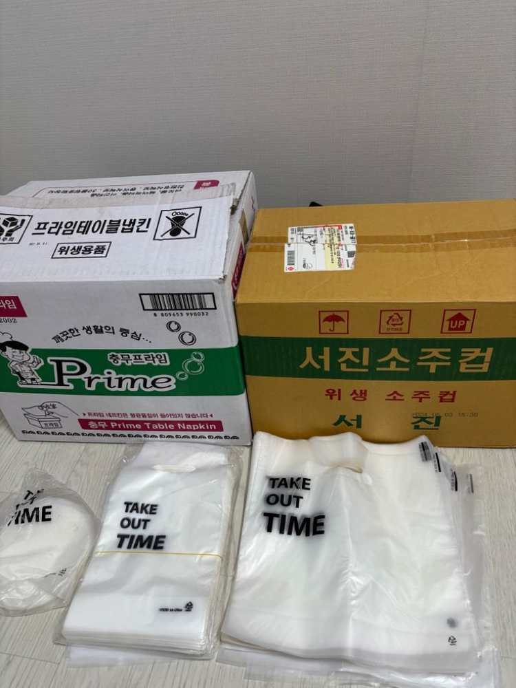 커피비닐캐리어 1구한봉지 2구 한봉지 냅킨 소주컵 실링팬