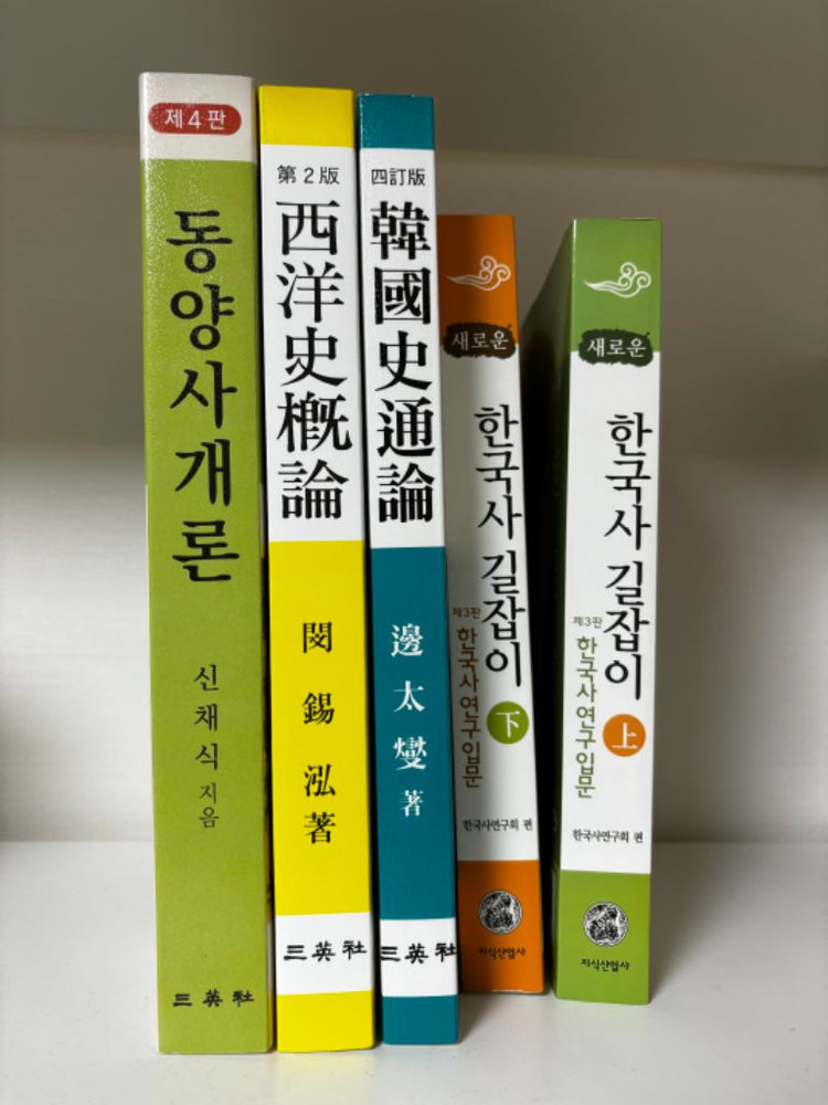 모두 완전 새책입니다. 임용 준비하던 중 기존 책이 낡아 새책을 구매했는데 합격하여 보관만 하다가 판매합니다. 합격의 기운을 드려요! 1.동양사개론 3만(택배비 포함)-판매완료 2.서양사개론 2만(택배비 포함) 3.한국사통론 18000원(택배비 포함)-판매완료 4. 새로운 한국사 길잡이 상하세트 3만(택배비 포함)