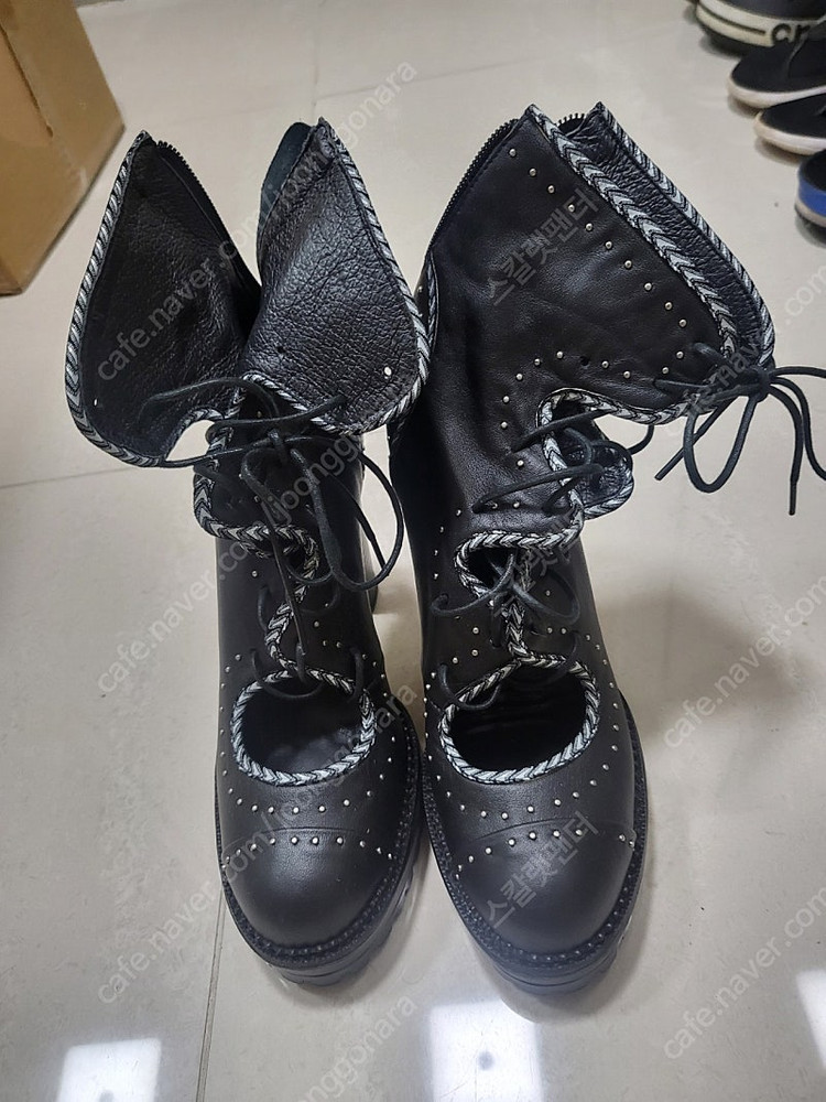 슈콤마보니 여성 블랙 워커힐 (250-255) 실내에서 신어보기만 했어요 (외부착용X) 굽없는 신발만 신으니 잘 안신게 되네요 소가죽이고 유니크한 디자인이 멋져요 굽은 10cm정도이고 앞 통굽이 있어 편해요 징장식 하나 빠져서 눈물을 머금고 싸게 내놓아요 택포 언제든 연락주세요~~ 중고특성상 교환 또는 반품😵