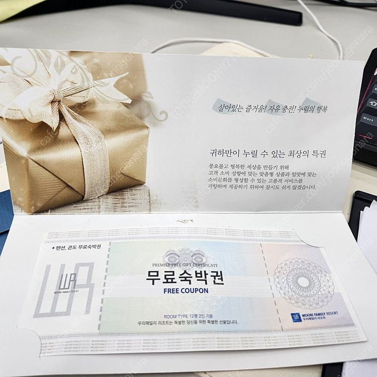 ※ 카페 상품 게시글은 자동으로 중고나라 앱/사이트에 노출합니다. 노출을 원하지 않으실 경우 고객센터로 문의 바랍니다. ※ 등록한 게시글이 회원의 신고를 받거나 이상거래로 모니터링 될 경우 중고나라 사기통합조회 DB로 수집/활용될 수 있습니다. ─────────────────── 📢 제목에 "제조사/ 브랜드 명"과 "티켓명(ex. 스타벅스 아메리카노 Tall) ”을 넣어 작성하면, 보다 빠른 판매가 가능합니다! 📢 게시글 작성 시 배송 방법에 “직거래”와 “내 위치” 설정할 경우, 보다 빠른 판매가 가능합니다! 👆 오늘 작성가능한 게시글 수가 부족하다면, 상단에 "중고나라 앱 다운받기"를 통해서 앱에서 작성해 보세요! 우리패밀리리조트 12평 2인 숙박권 판매해요 사용처는 https://www.woriresort.com/ 여기서 확인해주시면 될거같아요 구매하시면 인증번호 관리번호 바코드 전달드릴께요~