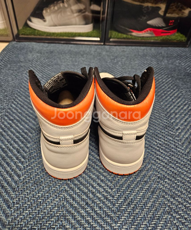조던 1 레트로 하이 OG 일렉트로 오렌지 사이즈 255mm 나이키 코리아 당첨 구매 신발 끈 오렌지 박스에 동봉해서 드립니다. 풀박스 구성입니다. 택을 떼긴 했지만 동봉해서 드려요. 밑창 보면 아시겠지만 딱 한번 실내에서만 신었습니다. 거의 새것과 다름없습니다.(자부함) 신발이 많아서 좀 처분하려고 내놨습니다. 택배 원하시면 +4,000원 입금해 주시면 됩니다.