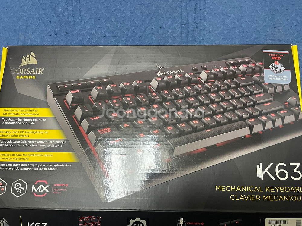 개인정보(거래정보)를 주고받는 행위는 사기에 노출될 수 있으므로 즉시 중고나라로 신고해 주세요커세어 k63 적축 유선입니다. 정상 동작하고 가끔 ㅁ키하고 스페이스 등 몇몇 키가 두번 입력되는 증상이 있어 부품용 또는 고쳐서 쓰실분께 판매합니다