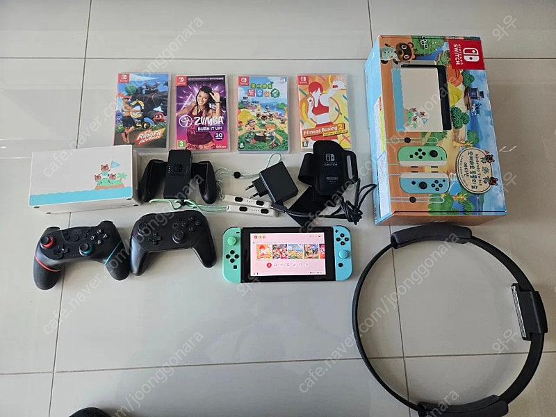 닌텐도 스위치 동숲 에디션 풀박 추가 프로콘 2개, 추가 링피트, 줌바, 동숲, 피트니스복싱2 타이틀 온라인에서 구매한 마리오카트가 있어 초기화하지 않았습니다. 필요없으시면 초기화하시면 됩니다. 마지막 사진과 같이 상단 작은 긁힘(사진처럼 잘보이지 않으며 사용상 전혀 문제 없습니다)이 있네요. 그외 흠집은 없으며 아주 깨끗합니다. tv 뒤에 독으로 고정하여 사용했습니다. 타이틀 분리 판매는 하지 않습니다. 택배 거래시 착불입니다. 직거래는 김포 고촌에서만 합니다. 신용도는 저의 거래내역을 참고바랍니다. 문자주세요. 채팅 응답하지 않습니다.(마일리지 사기꾼이 많네요)