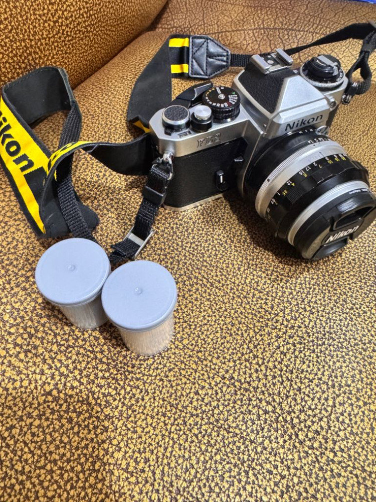 니콘 FE2 팝니다. FM2 후기형이구요 조리개 우선모드가 가능해서 인물사진 촬영할때 더 편해요. 렌즈는 50.4 코가쿠 해바라기 렌즈 끼워져있어요. 최대개방 조리개가 매우 밝구요, 렌즈가 따뜻한 색감을 가지고 있어요. 그래서 코닥필름을 쓰면 사진이 예쁘게 나와요. 코닥 울트라맥스 필름 3롤 같이 드려요. 오래된 기종이지만 상태가 정말 좋은편이구요, 저도 이것저것 구매해서 달아놨어요. 말씀주시면 자세한 사진 보여드릴게요.