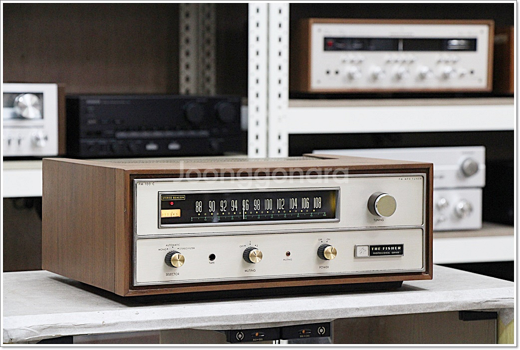 * 지하철 수인선 소래포구역 근처 '소래음향' * 매 장: 인천시 남동구 소래역동로 9-6 * 연락처: 010 - 3270 - 465 1965년 미국 피셔사에서 발매된 진공관 아날로그 튜너 모델 FM-100C 입니다 FM-100C는 국내에선 보기힘든 레어한 모델로 MPX 부분에 게르마늄 반도체가 들어있으며 가격대비 뛰어난 성능으로 고 사양의 피셔(Fisher) 튜너들과 대적 할 만한 성능을 보여주는 가성비 뛰어난 제품입니다 피셔 FM-100B의 후속 모델로 음질, 수신감도, 분리도등 전체적인 성능을 개선한 제품이며 피셔만의 개성있는 독특한 음색과 높은 감도등이 돋보이는 추천드릴 만 한 가성비 좋은 진공관 아날로그 튜너입니다 제품 입고후 튜너전문 수리점에서 오랜시간 철저히 점검 및 수리 마친 제품으로 현재 수신 아주 잘되고 스테레오 잘뜨며 피셔 특유의 안정감있고 음장감 좋은 아날로그 소리결 잘 나옵니다 또한 제치 우드케이스도 전문 공방에 맡겨 찌든때 싹 벗겨내고 깨끗히 리빌트 마쳤 으며 전면 판넬도 싹 분해후 클리닝하고 양쪽 튜닝창 전구도 깔끔히 교체하여 현재 튜닝창 깨끗하고 선명하게 잘 보입니다 60여년의 세월이 흐른 제품이라 내부 및 일부 자연스런 세월감은 있지만 지난 세월 대비 현재 전체 깨끗한 상태 유지중입니다 제품 전체적으로 오버홀후 매장에서 장시간 내구성용 청음 테스트 잘 마친 제품으로 현재 기능 이상없이 수신 잘되고 스테레오 잘뜨며 질감좋은 피셔 특유의 아날로그 소리결 아주 잘 나옵니다 Made In USA-전원110V 판매가-90만 (전체 오버홀 비용반영가) 제품스펙- Fisher FM-100C FM Stereo Tuner Tuning Bands: FM Tuning Scale: Analogue FM Tuning Range: 88 to 108 MHz Valve complement: 12AX7, 6AU6, 6HR6, 6HA5, 6CW4 Year: 1965
