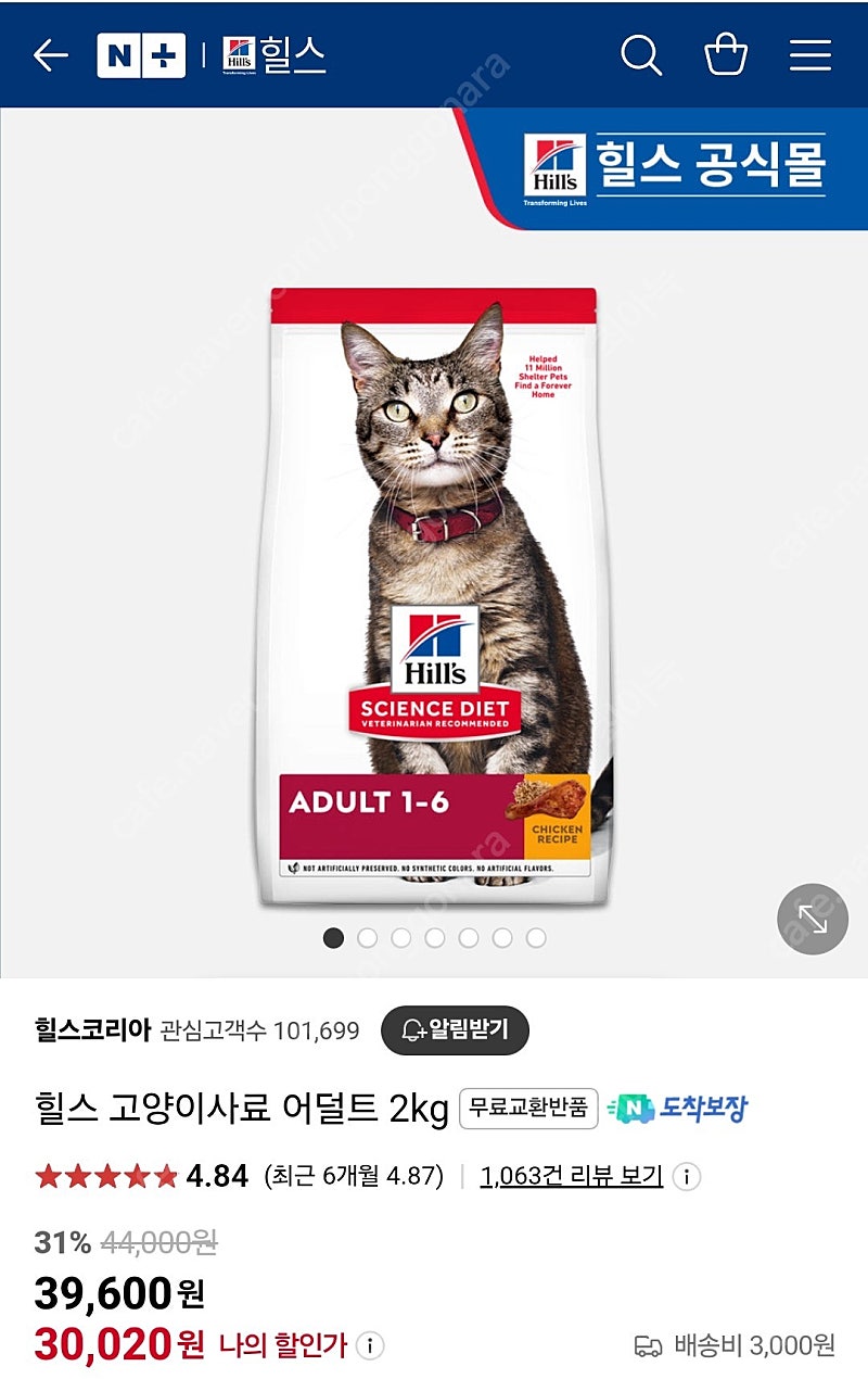 ※ 카페 상품 게시글은 자동으로 중고나라 앱/사이트에 노출합니다. 노출을 원하지 않으실 경우 고객센터로 문의 바랍니다. ※ 등록한 게시글이 회원의 신고를 받거나 이상거래로 모니터링 될 경우 중고나라 사기통합조회 DB로 수집/활용될 수 있습니다. ─────────────────── 📢 제목에 "제조사/ 브랜드 명"과 "상품명”를 넣어 작성하면, 보다 빠른 판매가 가능합니다! 📢 게시글 작성 시 배송 방법에 “직거래”와 “내 위치” 설정할 경우, 보다 빠른 판매가 가능합니다! 👆 오늘 작성가능한 게시글 수가 부족하다면, 상단에 "중고나라 앱 다운받기"를 통해서 앱에서 작성해 주세요! 힐스 어덜트 고양이 사료 판매합니다 미개봉 상품이에요 유통기한은 2026년 1월입니다 편의점 택배로 보내드려요! (착불)