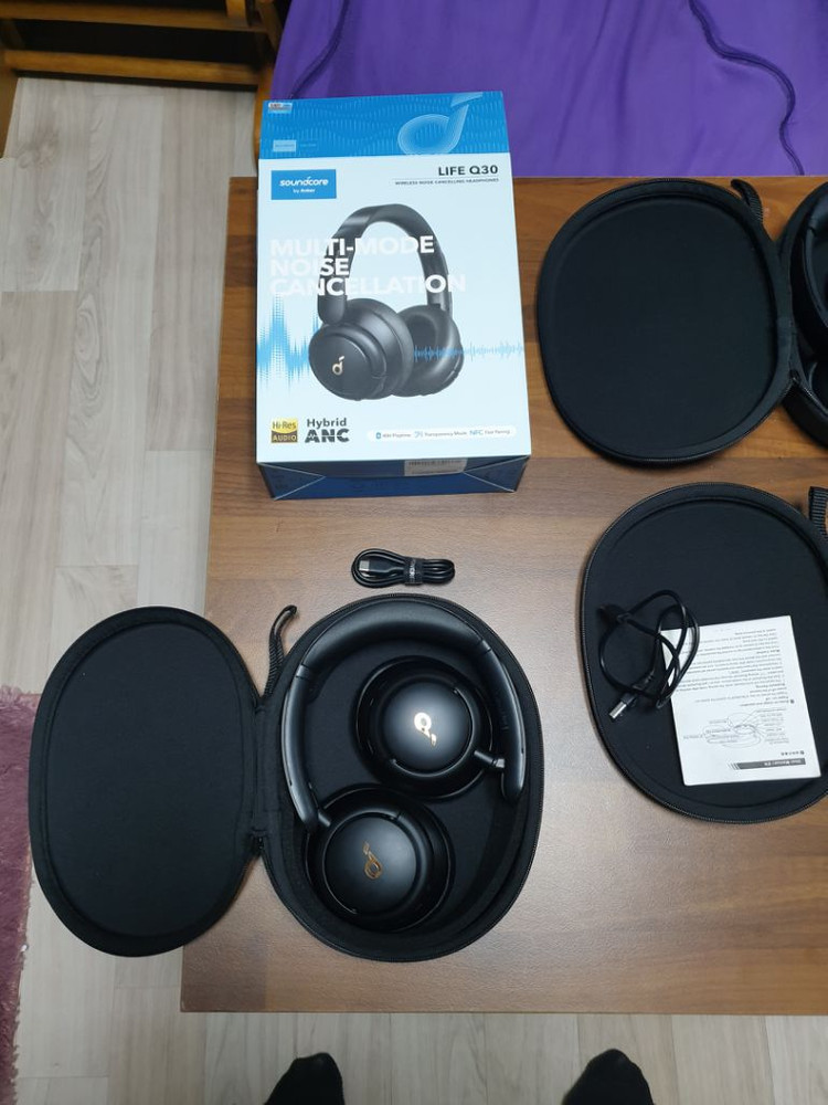Anker 앤커 노이즈캔슬링 블루투스 헤드폰 판매합니다. 1. 앤커 Q30 노이즈캔슬링 블루투스 헤드폰 크랙 2만 헤드폰 단품입니다 2. 앤커 Q30 노이즈캔슬링 블루투스 헤드폰 박스셋 4만 2대 사용감 있으며 특이사항 없으며 구성은 본체, 전용케이스 케이블 설명서 박스입니다 3. 미개봉 앤커 Q35 노이즈캔슬링 LDAC 하이파이 블루투스 헤드폰 박스셋 6.5만 40mm 다이나믹 드라이버로 소리 좋으며 블루투스 고급 코덱인 LDAC 지원 모델이며(sony 지원 코덱), 배터리 없으면 케이블 연결하여 유선헤드폰으로 사용가능합니다. 가성비 좋은 헤드폰으로 오버이어라 귀가 편하고 노이즈캔슬링 성능도 좋습니다. 터치로 트랜스페런시 기능(외부 소리 듣기 모드)가 되어 편리하고 충전은 c타입입니다. 구성은 박스풀셋입니다 4. Q45 본체 케이스 7.5만 사용감 외 특이사항 없으며 본체 전용케이스 구성입니다 직거래는 충북혁신도시 또는 서울 애오개역 택배거래 가능합니다.(착불 또는 5천원 선입금)