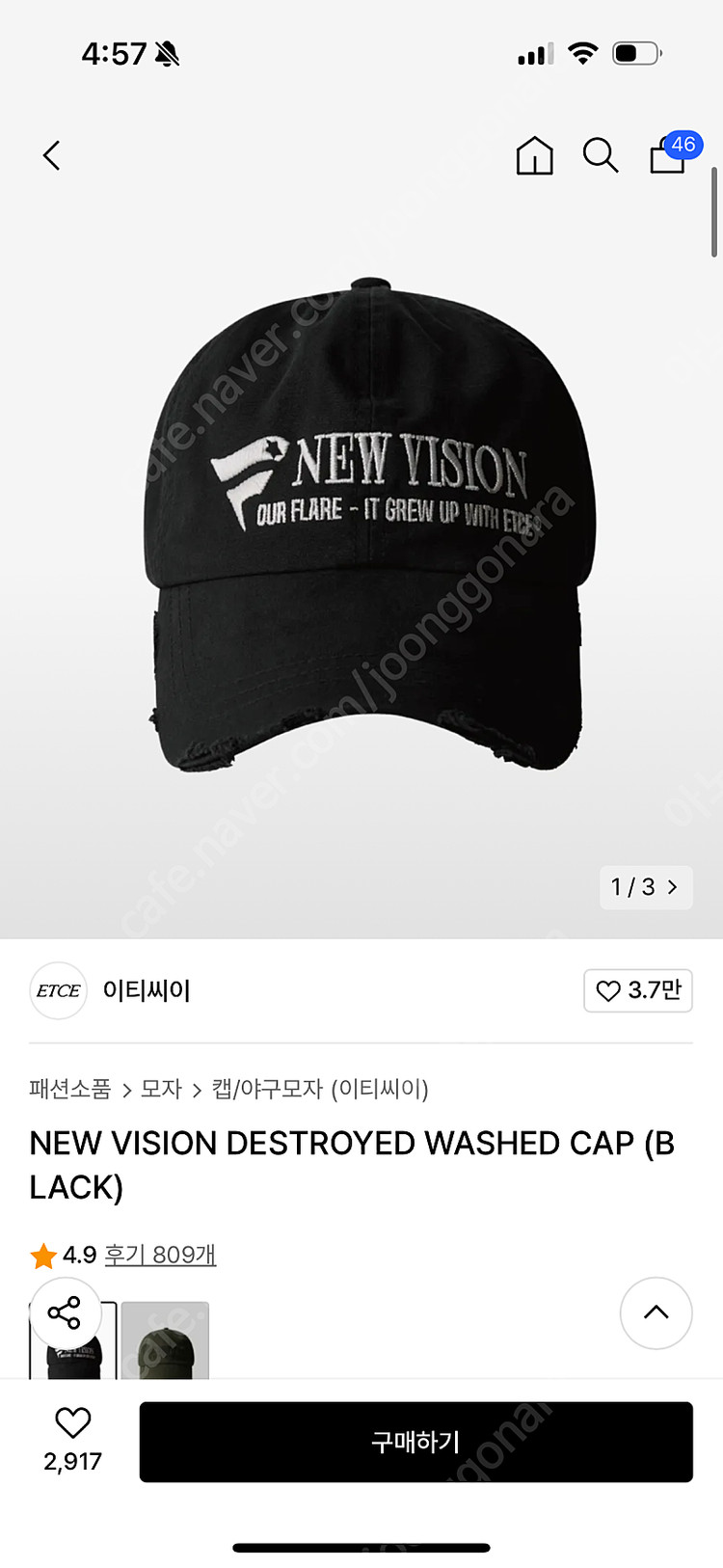※ 카페 상품 게시글은 자동으로 중고나라 앱/사이트에 노출합니다. 노출을 원하지 않으실 경우 고객센터로 문의 바랍니다. ※ 등록한 게시글이 회원의 신고를 받거나 이상거래로 모니터링 될 경우 중고나라 사기통합조회 DB로 수집/활용될 수 있습니다. ─────────────────── 📢 제목에 "제조사/ 브랜드 명"과 “상품명(ex. 숄더 핸드백)”을 넣어 작성하면, 보다 빠른 판매가 가능합니다! 📢 게시글 작성 시 배송 방법에 “직거래”와 “내 위치” 설정할 경우, 보다 빠른 판매가 가능합니다! 👆 오늘 작성가능한 게시글 수가 부족하다면, 상단에 "중고나라 앱 다운받기"를 통해서 앱에서 작성해 보세요! ※ 카페 상품 게시글은 자동으로 중고나라 앱/사이트에 노출합니다. 노출을 원하지 않으실 경우 고객센터로 문의 바랍니다. ※ 등록한 게시글이 회원의 신고를 받거나 이상거래로 모니터링 될 경우 중고나라 사기통합조회 DB로 수집/활용될 수 있습니다. ─────────────────── 📢 제목에 "제조사/ 브랜드 명"과 “상품명(ex. 숄더 핸드백)”을 넣어 작성하면, 보다 빠른 판매가 가능합니다! 📢 게시글 작성 시 배송 방법에 “직거래”와 “내 위치” 설정할 경우, 보다 빠른 판매가 가능합니다! 👆 오늘 작성가능한 게시글 수가 부족하다면, 상단에 "중고나라 앱 다운받기"를 통해서 앱에서 작성해 보세요! ETCE NEW VISION DESTROYED WASHED CAP (BLACK) 이티씨이 뉴비전 디스트로이드 워시드 캡 모자 팝니다 받고 1회 실착해보고 나뒀는데, 손이 잘안가서 판매합니다! 후기 많고 평이 좋은 제품이고, 라지사이즈입니다. 우체국택배로 포장 잘해서 보내드릴게요. 택비 별도 3천원입니다.