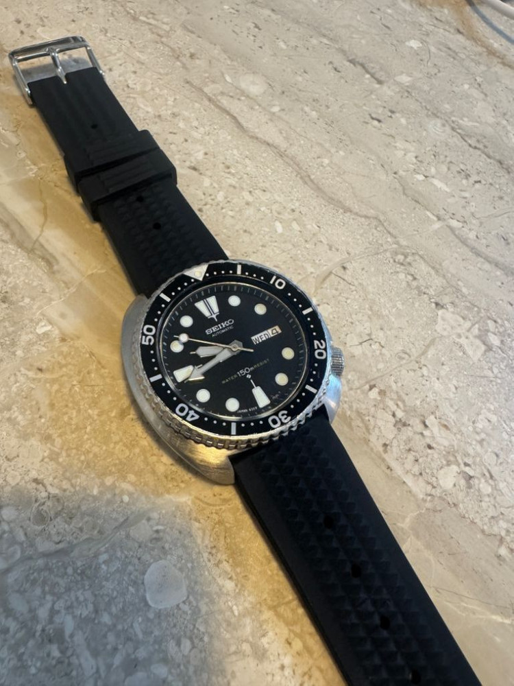 세이코 터틀 6309-7040 입니다 올제치이며 전 판매자분이 6개월전에 구매하셨을때 오버홀 되어있었다고 합니다 초기버전으로 다이얼 6시쪽에 스와 마크 있습니다
