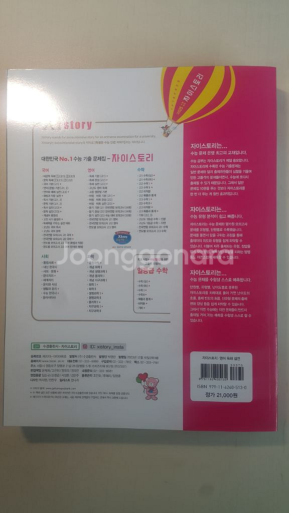 수경출판사 수능 영어의 자이스토리 영어 독해 실전 교재입니다. 강의교재 및 학습용 교재로 사용하실 분은 수강하시려는 강의 교재 여부, 교재번호, ISBN 등을 통해 상품에 대한 정보를 정확히 확인하신 후 구매바랍니다. 혹시 판매자 상점에 없는 다른 교재나 도서 구매를 희망하신다면, 언제든지 문의주시면 구매 가능 여부와 비용을 확인해드리겠습니다. [판매정보] - 상태: 필기 없음 - 판매가: 표시가격 참고 - 묶음배송: 묶음배송 가능 - 선불배송: 3,800원 (도서지역 700원 추가) - 무료배송: 판매자 물품 4만원 이상 묶음구매시 무료배송 - 기타배송: 별도 문의 (CU 알뜰택배, GS25 반값택배, 우체국 준등기) [주의사항] - 착불배송: 주소지, 무게 등에 따라 택배비 변동이 발생합니다. 정확한 배송비는 택배를 접수해야만 알 수 있는데 경험상 4.5천원 전후 정도 나올 것 같습니다. - 묶음배송: 택배발송 전 같은 주소로 여러 상품을 결제했을 경우 자동으로 묶음배송으로 처리해드립니다. - 안전거래: 안전거래 시스템상 배송비 결제 기능이 지원되지 않을 경우 배송비는 착불로 부과됩니다. 안전거래 시스템상 배송비를 결제하신 경우엔 선불 택배로 발송됩니다. - 편의점 수령: CU 알뜰택배, GS25 반값택배 등 편의점 방문 수령 택배로 희망하신다면 별도 문의주시면 안내드릴게요. [물품정보] - 도서: 자이스토리 영어 독해 실전 - 출판: 저이스토리 - 집필: 김도원 - 분류: 대학수학능력시험 영어영역 - ISBN/코드: ***-**-****-***-* [출판사 서평] - 수능 영어 기출문제집 - 대한민국 넘버원 수능 기출 문제집 - 수능 기출 문제은행 - 최신 유형 최다 수록 - 수능, 모의평가 독해 기출 문항 수록 - 학력평가 독해 기출 문항 수록 - 읽기만 해도 저절로 성적이 오르는 팔로 미 - 1등급, 2등급 대비 문제 집중 학습 - 단서, 발상 - 매력적 오답, 함정, 주의, 어법 특강 입체 첨삭 해설 - 유형별 핵심 문제, 중요 문제 동영상품 정보 내 개인정보는 자동 보호됩니다. 안심결제로 안전하게 거래하세요.