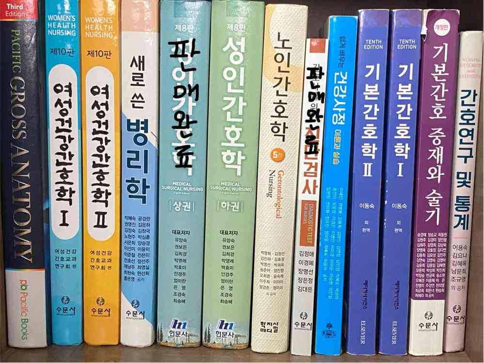 올해 졸업해서 각종 전공 서적 팝니다! 대부분 책 초반만 필기되어있고, 나머지는 깨끗한 상태입니다! 필기할 때 자대고 밑줄치는 타입이고, 형광펜도 여러색 사용하지 않아 깔끔하게 보실 수 있습니다!! 1) 노인간호학 - 필기 20장 이내, 가격 : 2.0 2) 해부학 Gross Anatomy - 필기 20장 이내, 가격 2.3 3) 기본간호학 1권 - 대략 3분의 1 정도 필기, 가격 1.8 4) 기본간호학 2권 - 60~70장 정도 필기, 가격 1.8 * 기본간호학 1,2권 세트 구매시 3.2 5) 인체 생리학 - 2장만 필기, 가격 : 2.5 6) 의학용어 - 15장 이내 필기, CD 포함. 책 앞 표지가 조금 울었음. - 가격: 2.0 7) 여성건강간호학 1권 - 필기 X, 가격 : 3.0 8) 여성건강 간호학 2권 - 필기 X, 가격 : 3.0 * 여성건강간호학 1,2권 세트 구매시 5.5 9) 성인간호학 하권 - 필기 X, 가격 : 4.8 10) 비판적 사고에 기반한 간호과정 - 3분의 2정도 필기, 부록 포함. 가격 : 1.5 11) 쉽게 배우는 건강사정 - 3분의 2정도 필기, 가격 : 1.7 12) 새로 쓴 병리학 - 필기 5장 정도, 가격 : 2.5 13) 간호연구 및 통계 - 필기 X, 가격 : 1.6 14) 간호실무윤리 - 3분의 2정도 필기, 가격 : 1.4 15) 미생물학 - 3장만 필기, 가격 : 2.0 16) 간호학개론 - 20장 정도 필기, 가격 : 1.2 17) 간호 이론의 이해 - 필기 X, 가격 : 1.5 18) ❌재활간호의 이론과 실제 ❌(판매 완료) 19) 영화로 배우는 인간성장발달 - 전반적으로 필기, 가격 : 1.0 20) 알기 쉬운 영양학 - 3분의 2정도 필기, 가격 : 1.5 21) 알기 쉬운 심리학 - 3분의 1 정도 필기, 가격 : 1.2 22) 호스피스와 간호 - 필기 X, 가격 : 1.5 관심 있으신 분은 연락주세요!!😊