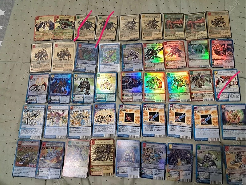 ※ 카페 상품 게시글은 자동으로 중고나라 앱/사이트에 노출합니다. 노출을 원하지 않으실 경우 고객센터로 문의 바랍니다. ※ 등록한 게시글이 회원의 신고를 받거나 이상거래로 모니터링 될 경우 중고나라 사기통합조회 DB로 수집/활용될 수 있습니다. ※ 게시글 내 외부 링크(타 플랫폼 주소, 카카오 오픈채팅 주소 등)을 등록하는 경우, 게시글 삭제 및 서비스 활동 제한 조치를 받을 수 있습니다. ─────────────────── 📢 제목에 "제조사/ 브랜드 명"과 "상품명”를 넣어 작성하면, 보다 빠른 판매가 가능합니다! 📢 게시글 작성 시 배송 방법에 “직거래”와 “내 위치” 설정할 경우, 보다 빠른 판매가 가능합니다! 👆 오늘 작성가능한 게시글 수가 부족하다면, 상단에 "중고나라 앱 다운받기"를 통해서 앱에서 작성해 주세요! 🚨회원님의 거래 게시글을 노린 중고나라 운영진 사칭 피싱 사이트를 주의하세요🚨 디지몬 카드 판매합니다 상태는 B급부터 S급까지 다양하며 궁금한 점이나 상태문의는 문자 부탁드립니다 일괄 택비포함 65만원에 판매중이며 네고문의 대환영이고 쿨거래시 할인가능입니다 ps.개별판매 가능하고 직거래도 합니다 직거래는 경의중앙선 운정역이나 금촌역에서 가능합니다