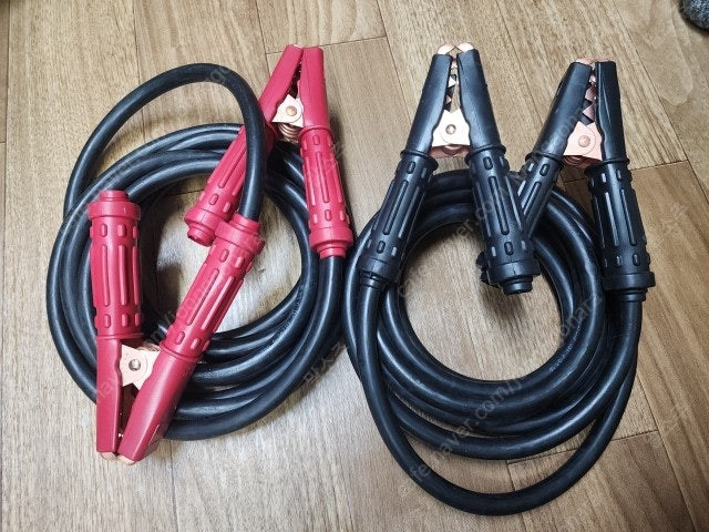 점프선 피복이 고무로 된 wct전선을 사용하였습니다. pvc재질이 아니라서 부드럽게 접혀서 겨울철에 사용하기 좋습니다. 두께는 35sq(mm2)라서 모든 자동차와 중기의 점프에 사용가능합니다. 300A짜리 집게에 길이는 4m입니다. 직거래는 경기도 양평입니다. 사진을 참고하세요.