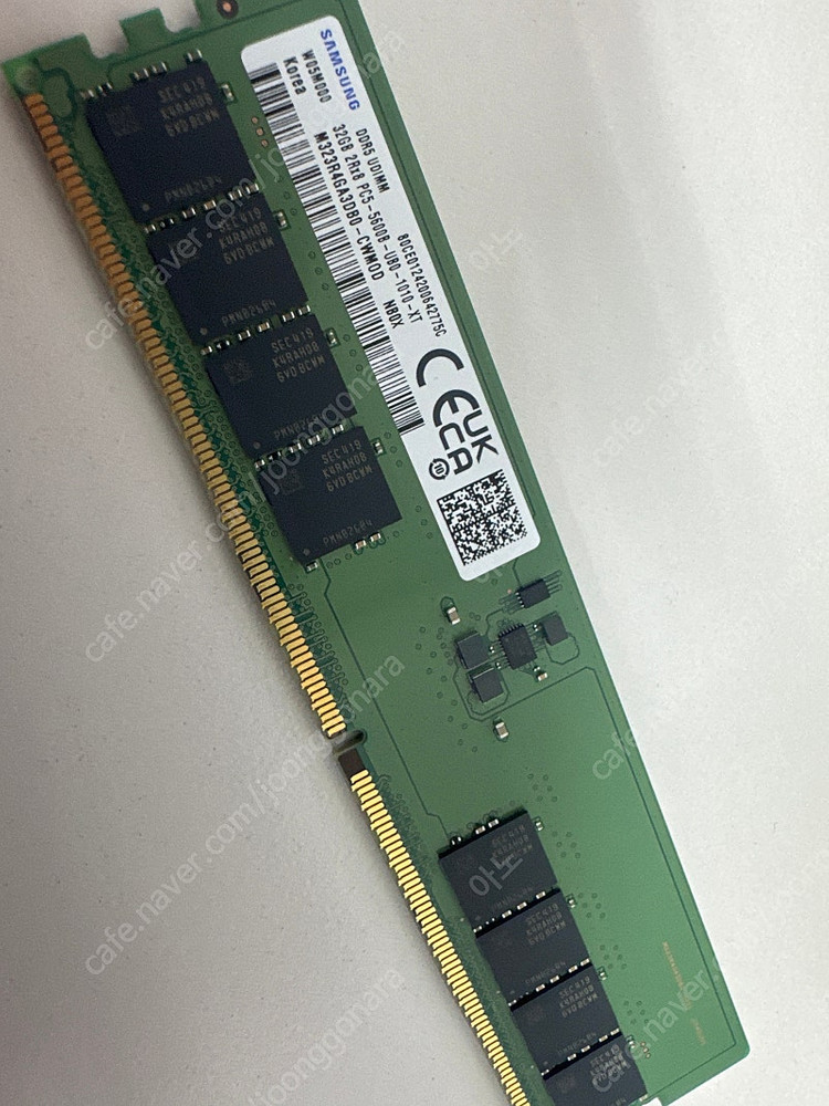 ※ 카페 상품 게시글은 자동으로 중고나라 앱/사이트에 노출합니다. 노출을 원하지 않으실 경우 고객센터로 문의 바랍니다. ※ 등록한 게시글이 회원의 신고를 받거나 이상거래로 모니터링 될 경우 중고나라 사기통합조회 DB로 수집/활용될 수 있습니다. ─────────────────── 📢 제목에 "제조사/ 브랜드 명"과 "상품명(ex. 맥북 에어 13)”를 넣어 작성하면, 보다 빠른 판매가 가능합니다! 📢 게시글 작성 시 배송 방법에 “직거래”와 “내 위치” 설정할 경우, 보다 빠른 판매가 가능합니다! 👆 오늘 작성가능한 게시글 수가 부족하다면, 상단에 "중고나라 앱 다운받기"를 통해서 앱에서 작성해 보세요! ※ 카페 상품 게시글은 자동으로 중고나라 앱/사이트에 노출합니다. 노출을 원하지 않으실 경우 고객센터로 문의 바랍니다. ※ 등록한 게시글이 회원의 신고를 받거나 이상거래로 모니터링 될 경우 중고나라 사기통합조회 DB로 수집/활용될 수 있습니다. ─────────────────── 📢 제목에 "제조사/ 브랜드 명"과 "상품명(ex. 맥북 에어 13)”를 넣어 작성하면, 보다 빠른 판매가 가능합니다! 📢 게시글 작성 시 배송 방법에 “직거래”와 “내 위치” 설정할 경우, 보다 빠른 판매가 가능합니다! 👆 오늘 작성가능한 게시글 수가 부족하다면, 상단에 "중고나라 앱 다운받기"를 통해서 앱에서 작성해 보세요! ※ 카페 상품 게시글은 자동으로 중고나라 앱/사이트에 노출합니다. 노출을 원하지 않으실 경우 고객센터로 문의 바랍니다. ※ 등록한 게시글이 회원의 신고를 받거나 이상거래로 모니터링 될 경우 중고나라 사기통합조회 DB로 수집/활용될 수 있습니다. ─────────────────── 📢 제목에 "제조사/ 브랜드 명"과 "상품명(ex. 맥북 에어 13)”를 넣어 작성하면, 보다 빠른 판매가 가능합니다! 📢 게시글 작성 시 배송 방법에 “직거래”와 “내 위치” 설정할 경우, 보다 빠른 판매가 가능합니다! 👆 오늘 작성가능한 게시글 수가 부족하다면, 상단에 "중고나라 앱 다운받기"를 통해서 앱에서 작성해 보세요! 삼성전자 ddr5 pc5-5600 32gb 램 4개 팝니다. 32GB 2Rx8 PC5-5600B-UB0-1010-XT 모델 한달전에 구매해서 한번도 사용하지않은 새제품입니다. 개수 4개 일괄판매입니다. 원하시면 사진의 케이스도 같이 보내드려요. 연락주세요. 지방이라 택배거래 선호하고 우체국 택배로 꼼꼼히 포장해서 보내드립니다!