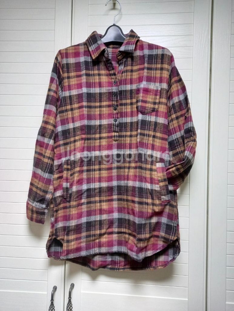 🎯 GS택배 가능합니다. (일반택배 3500원, 반값택배 1800원 추가해 주세요.) 코튼 100% 체크무늬 셔츠입니다. (마지막 사진의 색감이 실제와 가장 비슷합니다.) Y자 넥라인으로, 기모 느낌의 소재입니다. 소매 롤업 가능하고, 양쪽에 포켓 있습니다. 앞뒤 기장 차 살짝 있고, 옆부분 둥글게 처리되어 있습니다. 프리사이즈(55~66)입니다. 실측 가슴반품 51cm, 총장 (어깨부터) 73cm입니다. 접어두어서 구김 있습니다.