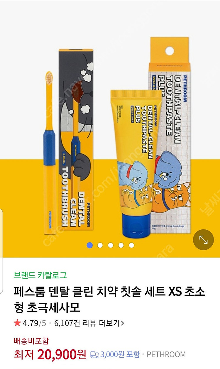 ※ 카페 상품 게시글은 자동으로 중고나라 앱/사이트에 노출합니다. 노출을 원하지 않으실 경우 고객센터로 문의 바랍니다. ※ 등록한 게시글이 회원의 신고를 받거나 이상거래로 모니터링 될 경우 중고나라 사기통합조회 DB로 수집/활용될 수 있습니다. ※ 게시글 내 외부 링크(타 플랫폼 주소, 카카오 오픈채팅 주소 등)을 등록하는 경우, 게시글 삭제 및 서비스 활동 제한 조치를 받을 수 있습니다. ─────────────────── 📢 제목에 "제조사/ 브랜드 명"과 "상품명”를 넣어 작성하면, 보다 빠른 판매가 가능합니다! 📢 게시글 작성 시 배송 방법에 “직거래”와 “내 위치” 설정할 경우, 보다 빠른 판매가 가능합니다! 👆 오늘 작성가능한 게시글 수가 부족하다면, 상단에 "중고나라 앱 다운받기"를 통해서 앱에서 작성해 주세요! 페스룸 치약 칫솔세트 미개봉 새제품 많이 쟁여놔서 한세트 내어놓아요. 소형견에게 대체로 잘 맞습니다. 특히 칫솔은 강추합니다. 작고 부드러워서 덜 싫어하고 구석구석 닦이기도 좋아요. GS 반택비 포함입니다. 010-사8OO-육98O 문자나 댓글주세요. 🚨회원님의 거래 게시글을 노린 중고나라 운영진 사칭 피싱 사이트를 주의하세요🚨