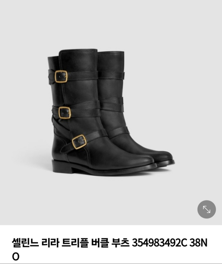 사진을 너무 못찍어 1.2번사진은 퍼온거에요 작년 신세계백화점 구매한 셀린느버클 부츠입니다 멋부리고 싶어 샀는데 ...살이쪄서... 샀을때 잠깐 딱한번 신고 보관만 해왔습니다 사진과 같이 바닥빼곤 깨끗합니다 저230~235신는데 잘맞고요 백화점에서 받은 구성품 다 있어요 박스 쇼핑백 더스트백