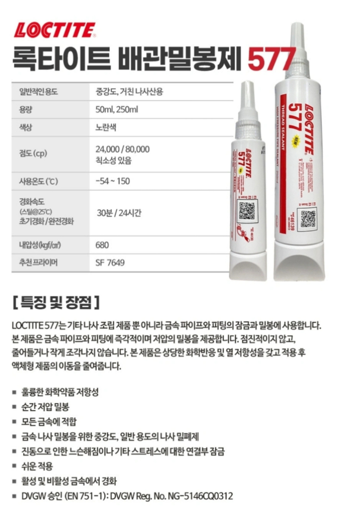 록타이트 577 배관밀봉제 250ml 새제품 절반가격으로 정리합니다 필요하신분은 저렴하게 가져가세요