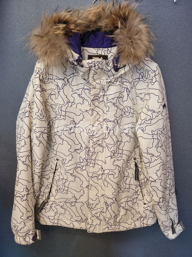 휠라 스키복이에요. 사이즈 95, 가슴단면 50, 총장 63, 90-95(55-66)까지 맞으실것같아요. 아이보리 바탕에 보라색이에요. 모자 탈부착안되구요. 털은 탈부착 가능해요. 착용샷이 더 이뻐요. 사용감 많지않아요.
